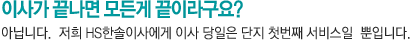 ÀÌ¿¡ ÀúÈñ HSÇѼÖÀÌ»ç´Â ÀÌ»ç 3ÀÏ ÈÄ ¹®Á¦ ¹ß»ý¿©ºÎ³ª ºÒ¸¸Á·½º·¯¿î ºÎºÐ¿¡ ´ëÇØ È®ÀÎ Àüȸ¦ µå¸³´Ï´Ù.